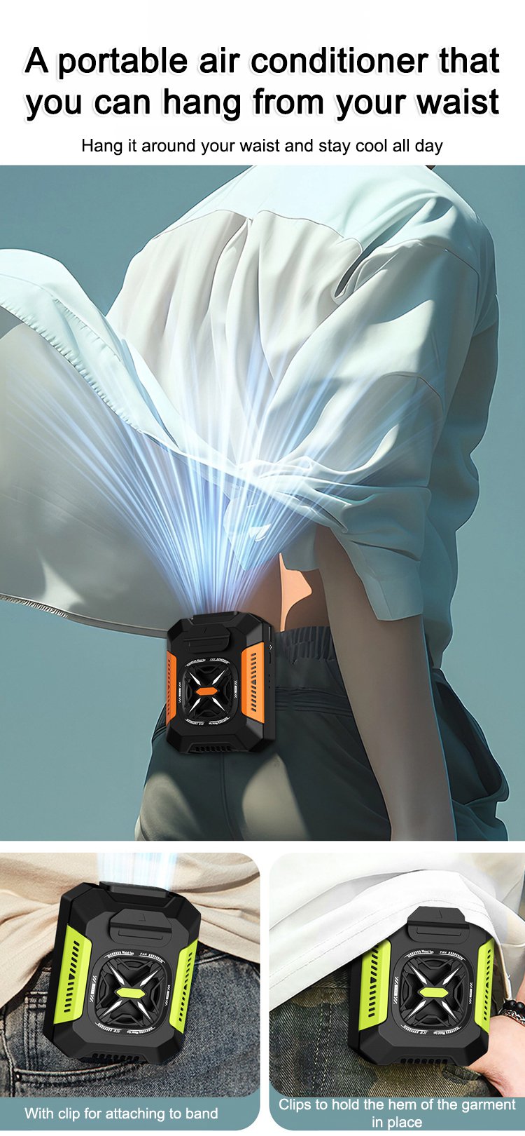 Outdoor portable waist-mounted fan